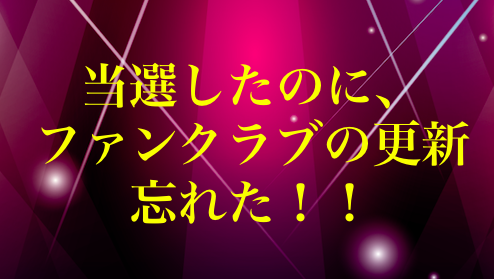 エンタメ・音楽・ドラマ ライブに当選したのに、ファンクラブの更新忘れた??どうなるの??ジャニーズの場合 ジャニーズのファンクラブって、数年前までは、有効期限切れても数ヶ月猶予があったから、なんとなく切らさずに、更新できたんだけど、近年は有効期限までに更新しないと、更新を忘れたりする。デビュー組はそれでも、まだ更新のお知らせが届くからなんとなく... 2021.03.08 エンタメ・音楽・ドラマ